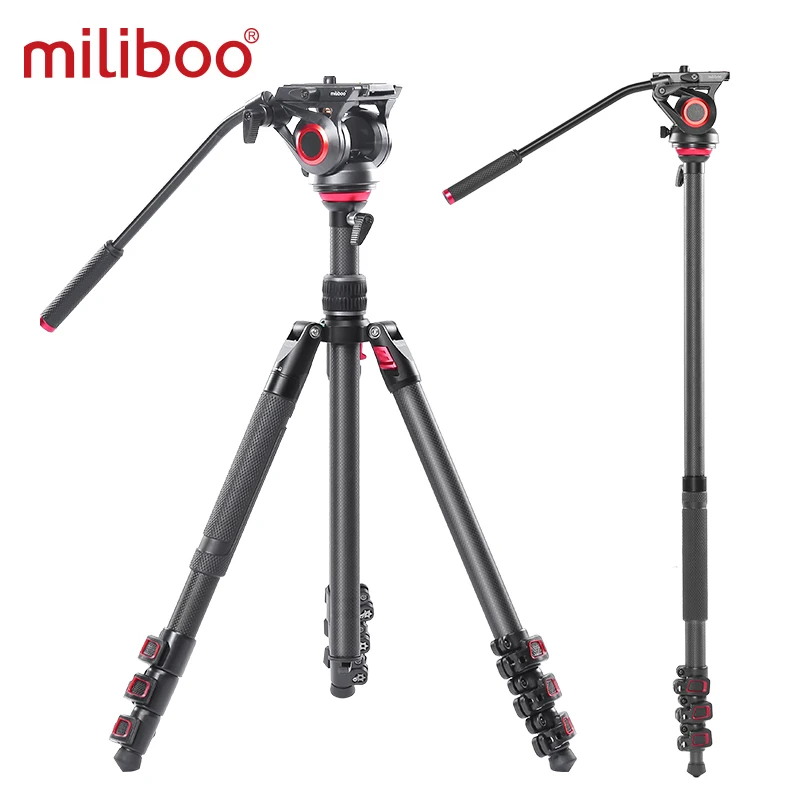 HOT SALE miliboo MUFP Camera Tripod Carbon Fiber Lightweight Compact Video Tripod with Fluid Drag Head 60mm
