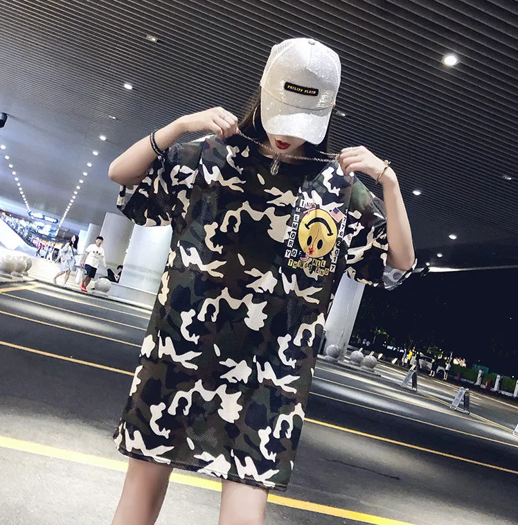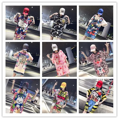 Best Quality Photo Shoot 2019 Cartoon Short Sleeve Summer Loose Mid-length T-shirt Dress Large Size Slimming Cov