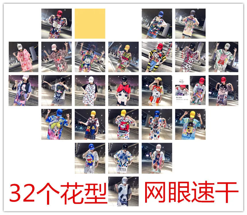 Photo Shoot 2019 Cartoon Short Sleeve Summer Loose Mid-length T-shirt Dress Large Size Slimming Cov