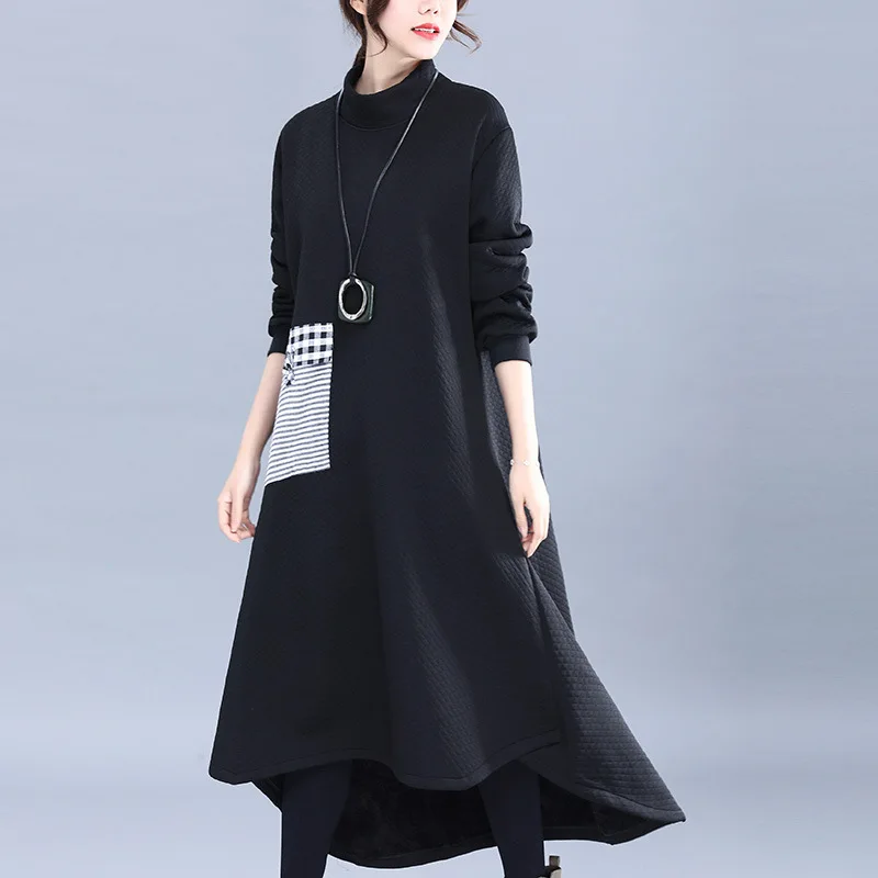 Photo Shoot 2019 Winter New Style WOMEN'S Dress Thick Quilted Casual High Collar Fashion Joint Base