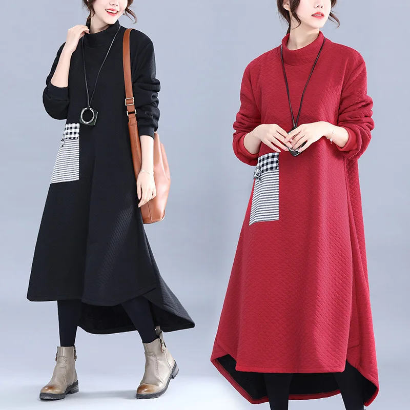 Hot Sale Photo Shoot 2019 Winter New Style WOMEN'S Dress Thick Quilted Casual High Collar Fashion Joint Base