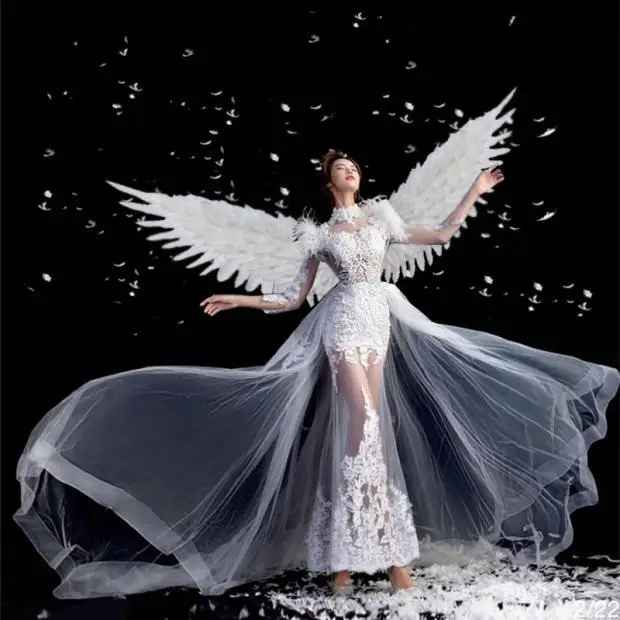 beautiful white angel feather wings Fashion feather accessories Wedding photo shoot Magazine shooti