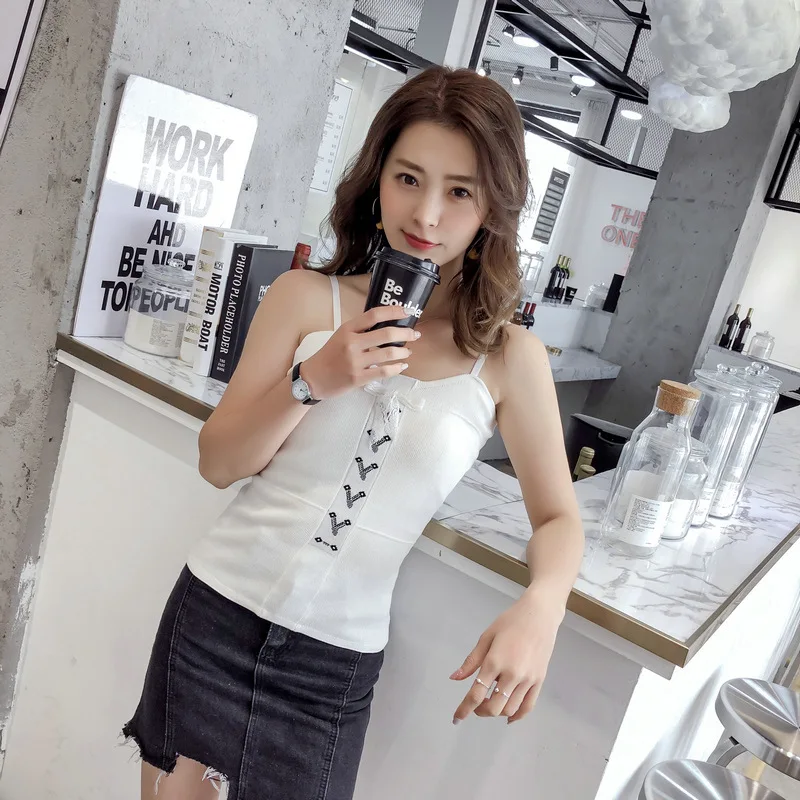 Photo Shoot 2019 Summer New Products Vest Female Summer Sexy WOMEN'S Dress Bandage Cloth Slim Fit T