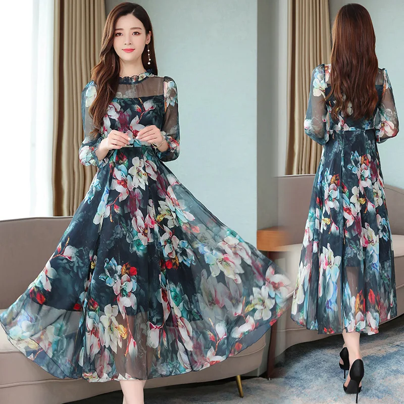 REVIEW TOP SELLER Photo Shoot Floral-Print Chiffon Dress WOMEN'S Dress 2019 Autumn New Style Elegant Very Fairy of Lo