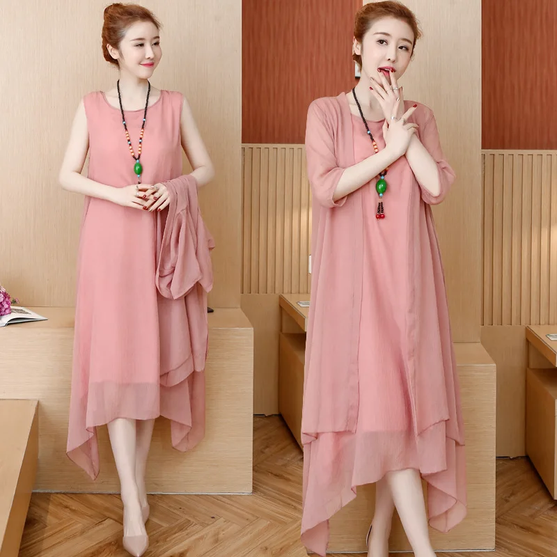 TOP Photo Shoot 2019 New Style Dress Retro National Wind Slimming Loose And Plus-sized Long Skirts Two-