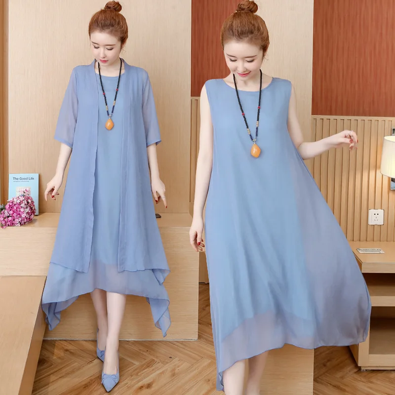 Photo Shoot 2019 New Style Dress Retro National Wind Slimming Loose And Plus-sized Long Skirts Two-